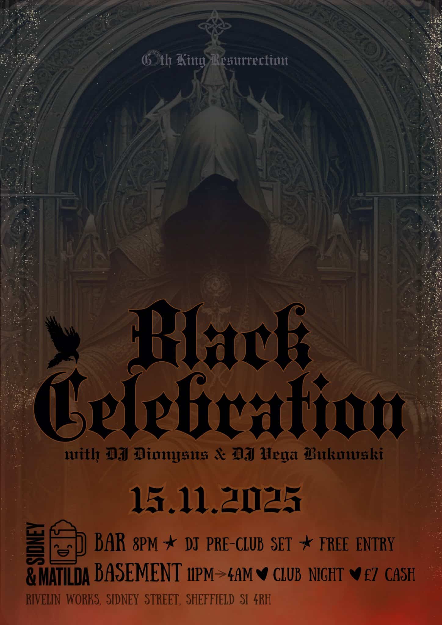 Goth King Resurrection brings you the next chapter in the Black Celebration story, a night of fire and ice…From the 8th hour in the great hall at Sidney & Matilda, DJ Dionysus & DJ Vega Bukowski unveil an incendiary fusion of Gothic Rock, Dark Wave, and Post-Punk, quenched through the shimmering echoes of Neofolk and Neomedieval, and tempered by the glacial sounds of Cold Wave, and the grinding rhythms of Industrial and Goth Metal. As the 11th hour strikes, we will descend into the underground chamber where darker, pulsating beats and eerie, thunderous vibes penetrate the haze and half-light. Amidst […]