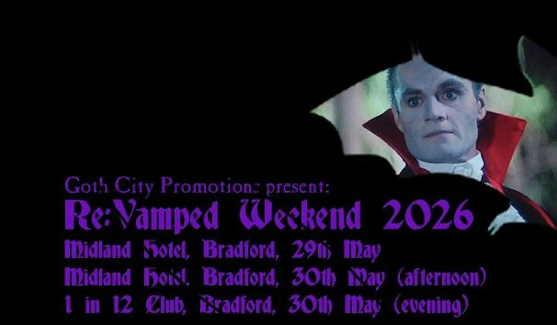 Midland Hotel Ballroom, Bradford Cheapside,, BradfordA weekend of vampire-adjacent culture and the Gothic, taking place in Bradford.