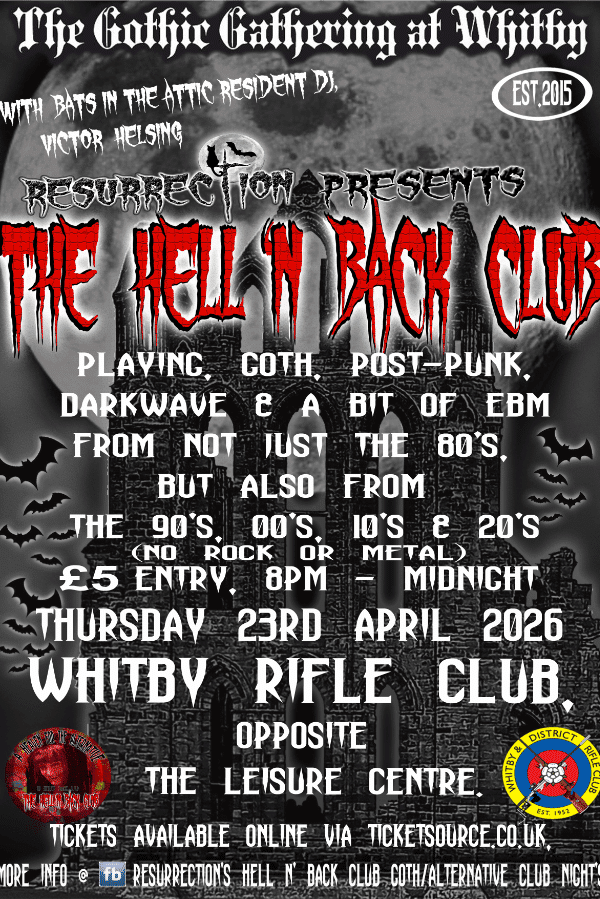 Resurrection's The Hell 'N Back Club returns to Whitby Next April, as part of The Gothic Gathering at Whitby Weekend. We'll be at a NEW Venue for us, but one that over the years has hosted many events over Goth weekend, Whitby Rifle Club. From 8pm - Midnight. Just £5 entry. Playing a Mixture of Goth, Post-Punk, Darkwave & a bit of EBM, from the 80's, 90's 00's, 10's & 20's. This is not an 80's goth night, nor is it a Rock & Metal night. We play a wide selection of Goth, Post Punk & Darkwave from around the […]