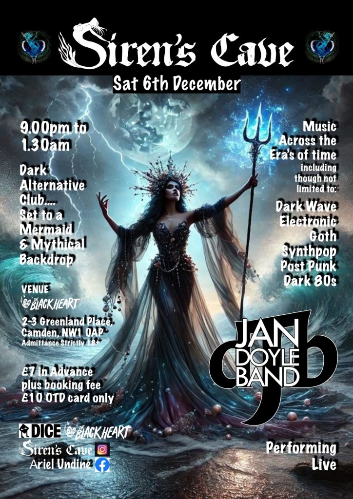 Siren’s Cave is a Dark Alternative Event set to a Mermaid & Mythical Backdrop, immersing you into a fantasy experience to dance the night away and leave the real world outside for a few hours. The unique and captivating Jan Doyle Band will be performing, with their full line up, supporting the extremely individual and brilliant frontman Derek Williams. A show not to be missed from this 80s influenced electronic / guitar band with a definitive lyrical edge. Skintight SJ will join Dragon and Stardust Siren, entertaining you with a selection of Dark Wave / Electro, Goth, Synthpop, Post Punk and Dark […]