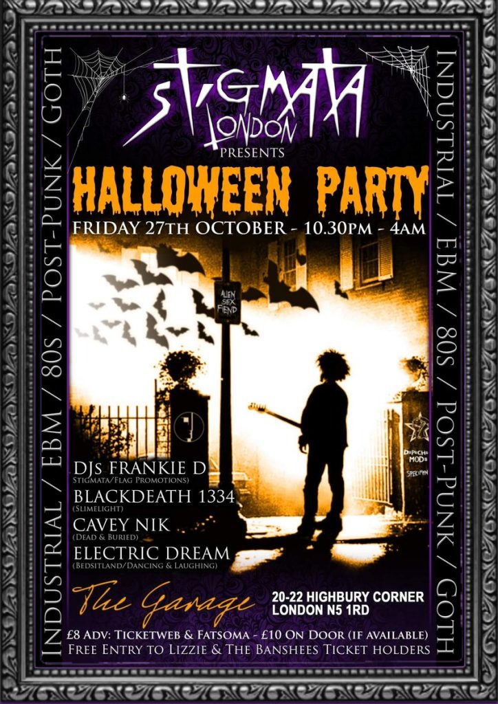 The infamous Glasgow Club Stigmata comes to London once more for one of their occasional soirées, this time for a HALLOWEEN PARTY at London’s legendary Garage main room! Resident Dj FRANKIE D founder of many legendary London Club nights including Eurobeat 2000, Electrogogo, London’s Club Noir and Stripped – London’s Newest Gay Alternative Club and he returns to his former stomping ground with a London take on his regular Glasgow night, featuring a night of Post-Punk, Goth, 80’s, Industrial and EBM music, so expect an eclectic mix of all these genres and a very busy dancefloor! Aiding and abetting him […]
